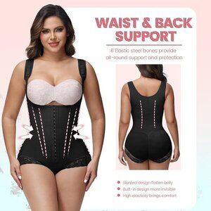 TUMMY CONTROL & WAIST SUPPORT: The faja body shaper adopts special composite fabric of nylon and spandex to provide you with 360-degree high compression, and 8 elastic steel bones provide all-round support and protection for your waist and back, effectively smoothing stomach bulges, dispersing pressure and creating S-shaped curve