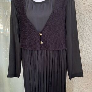 This elegant black long sleeve dress is perfect for any occasion. Its sleek design offers a sophisticated look, making it a versatile addition to your wardrobe.size 14 MADE IN USA.