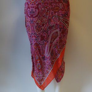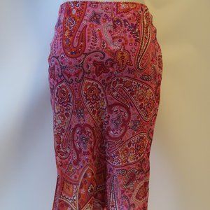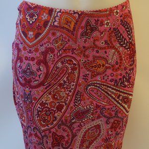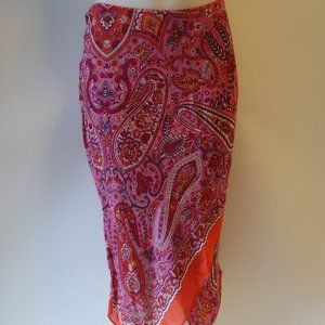WOMENS SHARAGANO BORA BORA PINK RED PAISLEY ASYMMETRIC SKIRT SZ S *