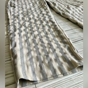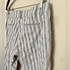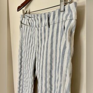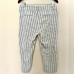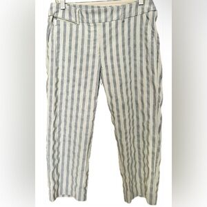 SHARAGANO Women’s Linen Blend Crop Blue Cream Stretchy Stripe Pants Size 6