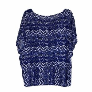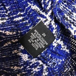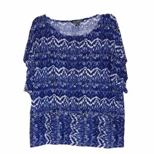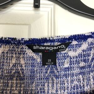 Sharango Black, White & Blue Onionskin Top. Size 2X. Like New. No visible flaws. Excellent pre-owned condition.