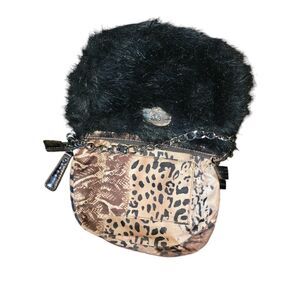 SHARIF Black Faux Fur Handbag Crossbody Handbag 2000s