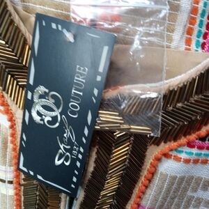 SHARIF COUTURE Native American GEOMETRIC DESIGN Brass colored bead EMBELLISHED LONG SLEEVE lined JACKET SIZE 2 X - NWT. Pit-p 25". Length 30". R1pem