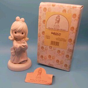 This beautiful Precious Moments porcelain figurine, titled "Sharing the Light of Love," is a timeless piece that will bring joy to any collector or lover of figurines.