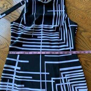 90’s Black and white shift dress sleeves dress fully lined back zipper and neck tie smoke/pet free