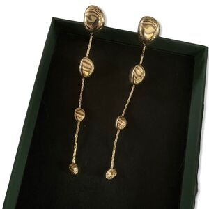 These elegant gold drop earrings add a touch of sophistication to any outfit. Perfect for both casual and formal occasions.
