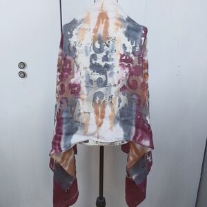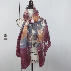 SHAWL SCARF Wrap Neutrals Burgundy/Gray Semi Sheer Elegant Oversized Stunning!