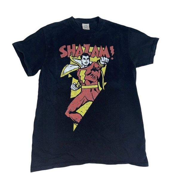 SHAZAM Captain Marvel Bolt Graphic Tee DC Comics Black Superhero Men’s Small