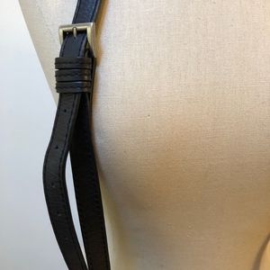 This is a beautiful edgy black leather crossbody bag by SHE + LO which has since sold out