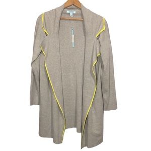 SHE + SKY | Grey Notched Collar Yellow Trim Open Cardigan Sweater size Large NEW