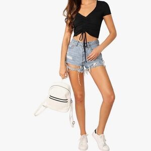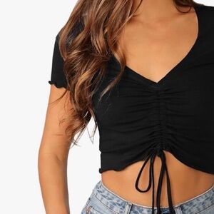 🏰🆕🩷SHE + SKY: MISTY ROSE Rib Knit Drawstring Ruched Front Top LARGE