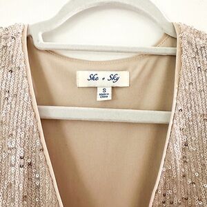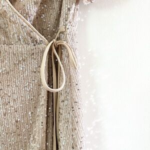 SHE + SKY Sequined Short Sleeve Wrap Dress - Size Small - Light Gold