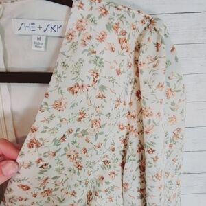 SHE & SKY V NECK LONG SLEEVE FLORAL DRESS, SZ MEDIUM