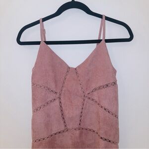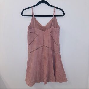 A short and breezy corduroy mini dress. Eyelet cut-out detail for flattering look. Ribbed material lays perfectly in an a-line. Zipper and adjustable straps. Size small
