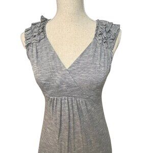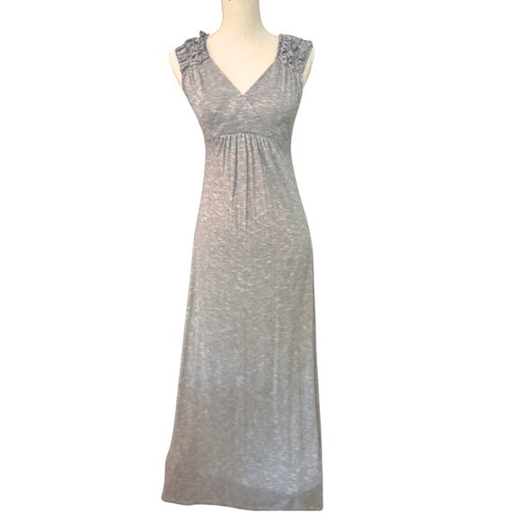 Y2K maxi dress, 2000s gray jersey dress, Soul Harmony Energy dress, vintage Y2K clothing, boho chic maxi dress, sleeveless jersey knit maxi, gray summer maxi dress, empire waist Y2K dress, ruffle sleeve maxi dress, minimalist 2000s style dress, retro maxi dress, transitional fall maxi dress