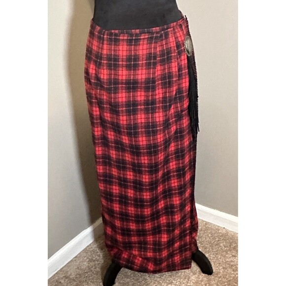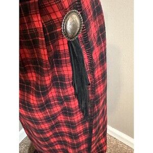 S.H.E. Southwestern Red Black Plaid Cotton Long Skirt Women’s 8 Leather Trim C5