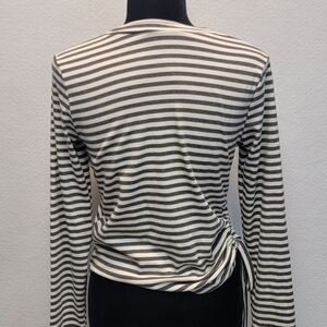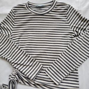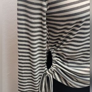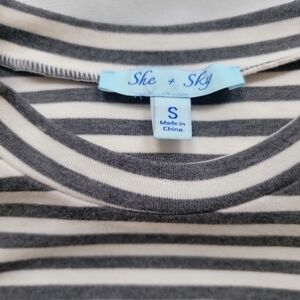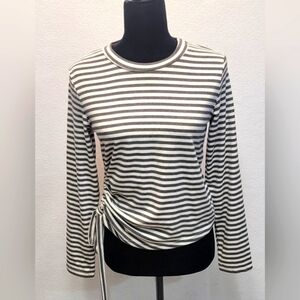She & Sky women's size small gray and white long sleeve top with keyhole ruching on side.