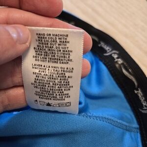 Vibrant sky blue cycling top with black trim. Features a zippered front. Ideal for cycling enthusiasts. Gently Used. Excellent condition! (A24)