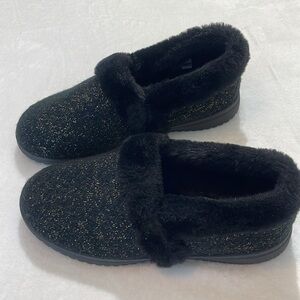 SHECHERS SIZE 10 Women's Black Fuzzy Slip-On Shoes