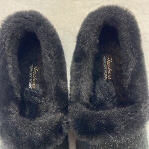 SKECHERS WOMENS SIZE 10 Step into comfort with these stylish black fuzzy slip-on shoes. Perfect for casual wear, they offer both warmth and elegance. VERY GOOD CONDITION, PREOWNED