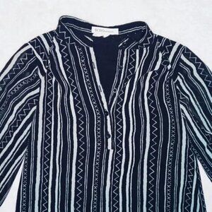Sheer black and off white button down shirt. Three quarter sleeve. Good condition.