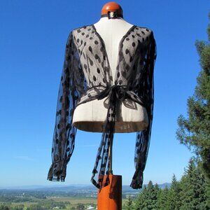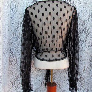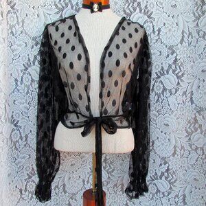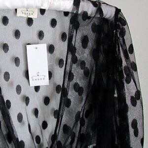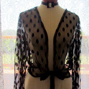 SHEER BLACK JACKET WRAP, M, BLACK POLKA DOTS, EMBER NWT LONG SLEEVES