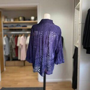 This vibrant purple sheer blouse in size XL is perfect for layering over dress pants or dressing down with jeans. Measuring 27 inches long and 22 inches wide from armpit to armpit, it offers a breezy, relaxed fit that adds a playful splash of color to any outfit. Light and versatile, it’s your new favorite layering piece for effortless style.