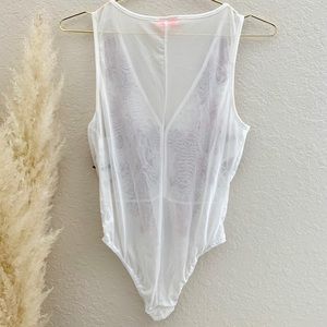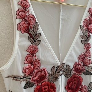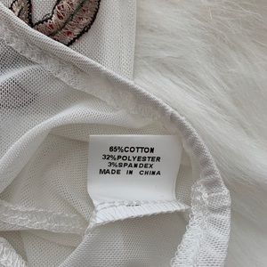 NWT; SEXY SHEER WHITE BODYSUIT ROSE FLOWER very stretchy material, not itchy or rough. It’s smooth