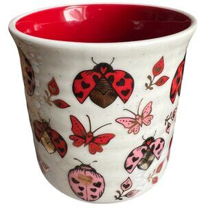 Sheffield Home mug, ladybug mug, butterfly mug, gold heart mug, pink and red mug, cottagecore mug, farmhouse mug, Valentines Day, insect mug, nature inspired mug, textured ceramic mug, deep red interior, spring mug, whimsical mug, vintage style mug, speckled mug, garden mug, collectible mug, animal print mug, bug mug, butterfly decor, ladybug decor, insect decor, gift idea, seasonal kitchenware, desk decor, pen holder, makeup brush holder, coffee mug, coffee cup, ladybug coffee mug, bug lover gift, whimsical drinkware, heavy ceramic mug
