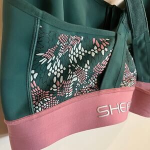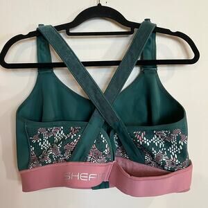 SHEFIT Ultimate Sports Bra Size 5Luxe Green Pink Floral Adjustable High Impact