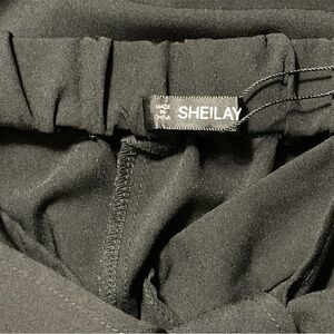 These black slacks have an elastic waist band on the back waistline and a belt. Pants have never been worn and are a size Medium by Sheilay. Gently worn.