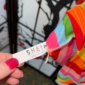 SHEIN 1XL Plus Size High Low High Bow Rainbow Stripe Short Sleeve Tee Shirt