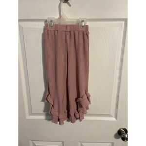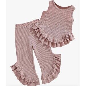 Layered Ruffle Hem Knitted Tank Top and Flared Pants Set. Fabric has slight stretch and is so comfortable. 100% polyester.