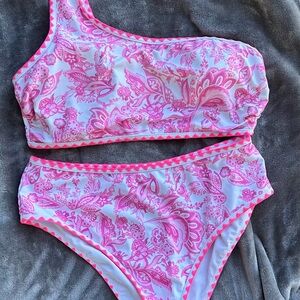 Women’s swimsuit from SHEIN in new condition aside from the tag being cut out. This is a 1X and so cute with such pretty details!