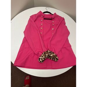SHEIN suit jacket pink w gold buttons and leopard cuffs , great condition