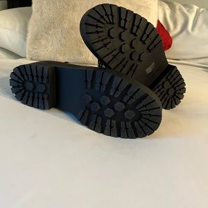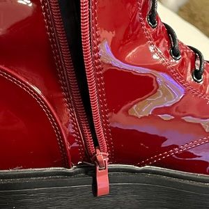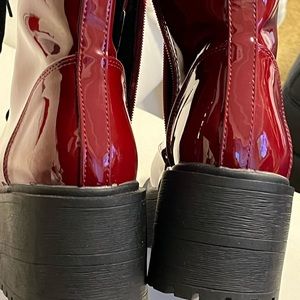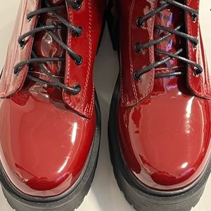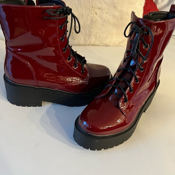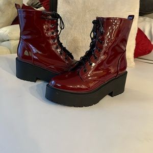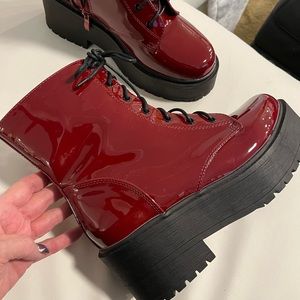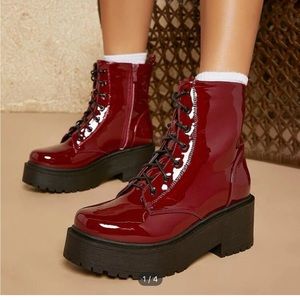 SHIEN combat boots burgundy, red lace up side zip Rooney wedge super shiny cute orders wrong size worn once. New this year🥾💯.