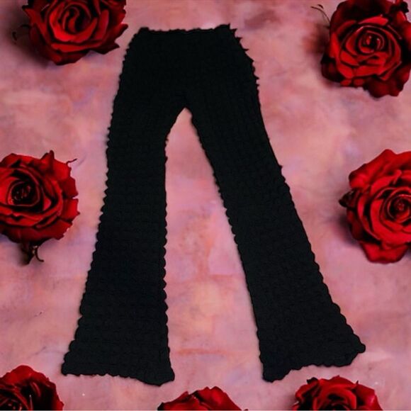 ๐ค Adorbs Rouched Textured Sexy Black High Waisted Puffy Flare Fun Pants ๐ผ Great for a beach coverup! ๐๏ธ