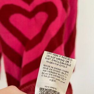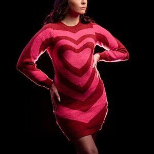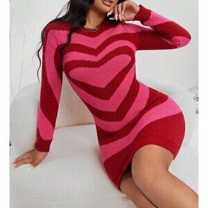 SHEIN Allurite Heart Pattern Round Neck Sweater Dress Pink Red Fitted Bodycon