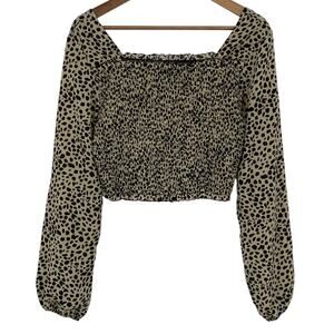 SHEIN Animal Print Smocked Body Balloon Sleeve Crop Top Size Large Square Neck