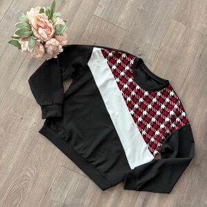 SHEIN Autumn Red & Black Houndstooth Stripe Crewneck Sweatshirt