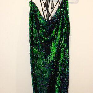 SHEIN BAE Crisscross Backless Split Thigh Sequin Cami Dress