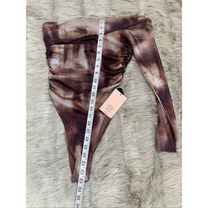 SHEIN BAE Women's Summer Tie Dye Printed Asymmetrical Collar Ruched Slim Fit Bodysuit