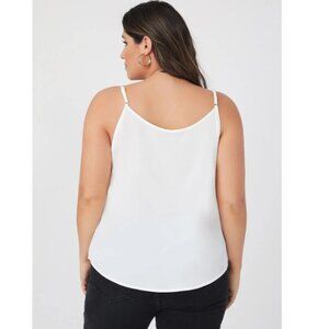 SHEIN BASICS Plus V-Neck Solid Cami Top in White - Size 1X