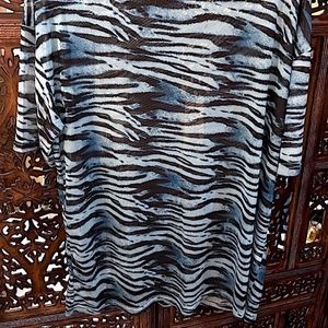 SHEIN BLUE AND BLACK ZEBRA ANIMAL PRINT SHEER SHORT SLEEVE T SHIRT MEDIUM