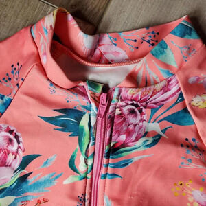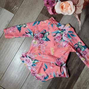 SHEIN Baby Girl Floral Print Raglan Sleeve Peplum One Piece Swimsuit Size 80