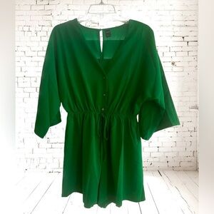 Excellent used condition. Kelly Green SHEIN batwing sleeve romper. Size small. Perfect for vacations.