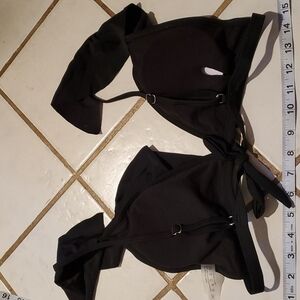 SHEIN black bikini top size 0XL ruffle shoulder adjustable straps and tye back