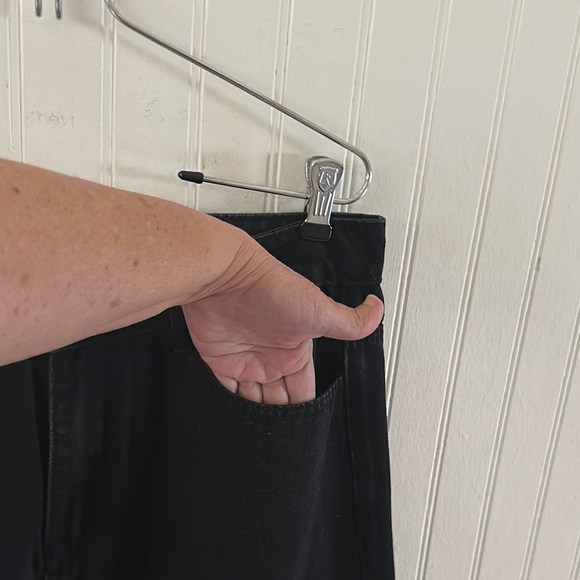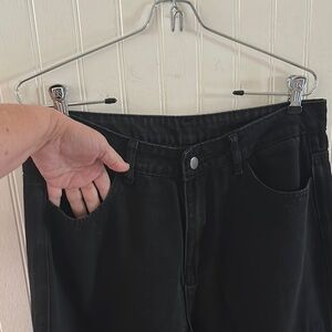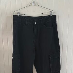 SHEIN Black Cargo Jeans with Yellow Smiley Patch sz M
