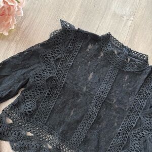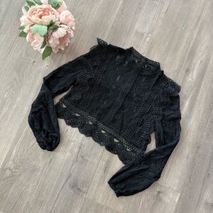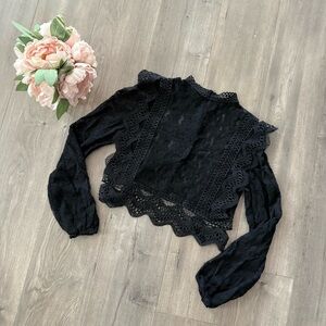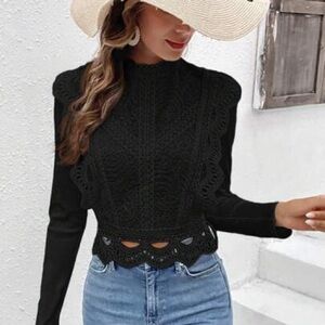 SHEIN Black Mademoiselle Lace Long Sleeve Cropped Top