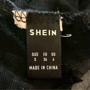 SHEIN Black Mesh Short Sleeved Tee Shirt Top with Velvet Stars